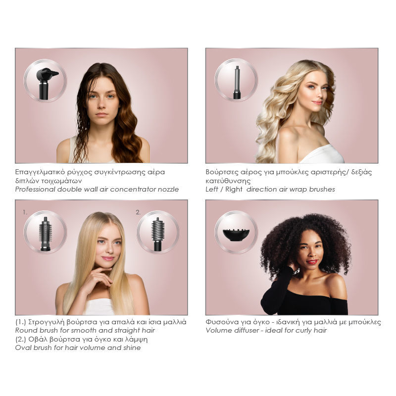 Multi Styler Primo THEA PRHS-40535 8 σε 1 Ηλεκτρική Βούρτσα με Αέρα για Μπούκλες και Ίσιωμα 1500W